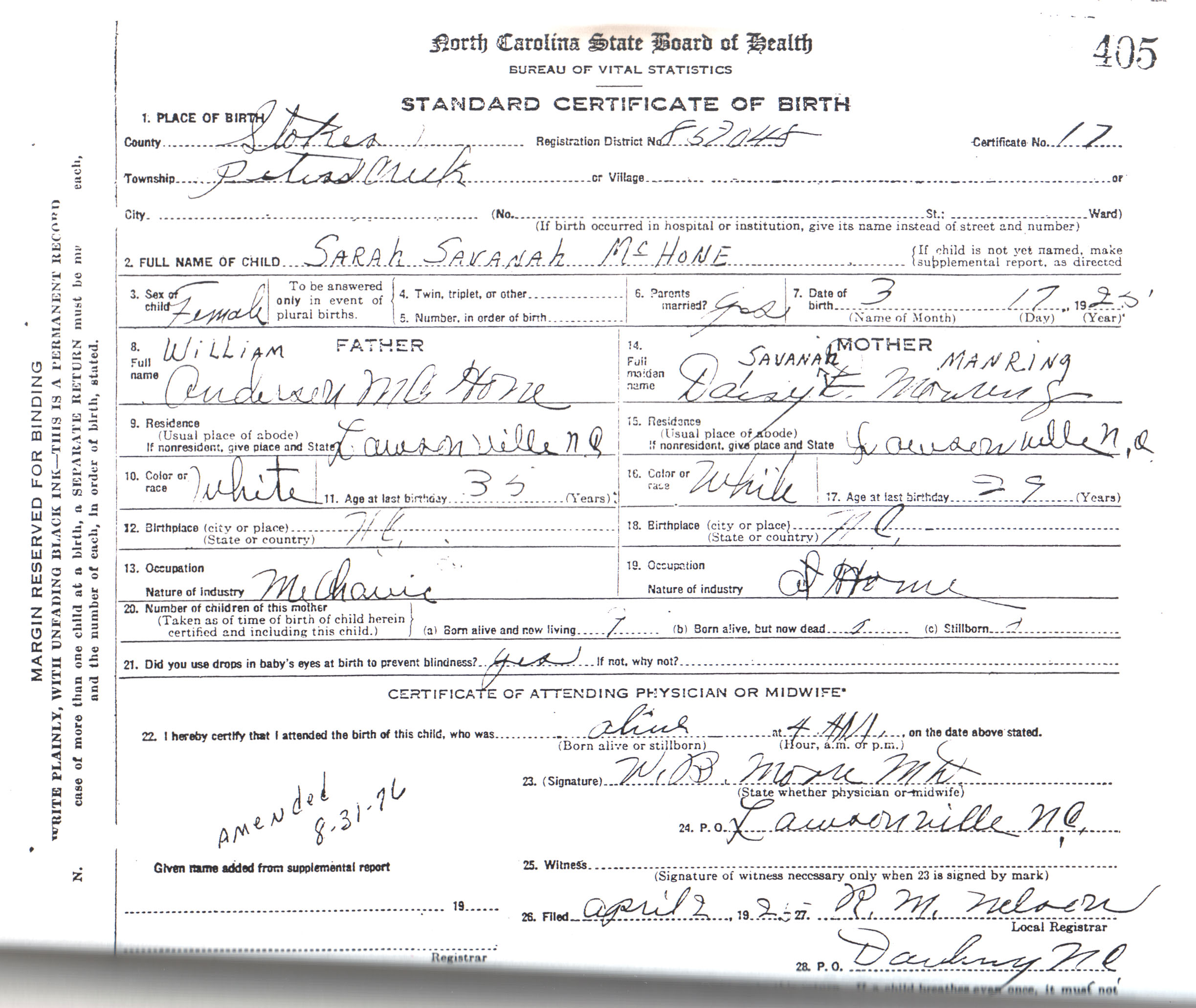 1. Family of McHone, William Anderson II and McHone, Daisy Savannah Manring [F0022]